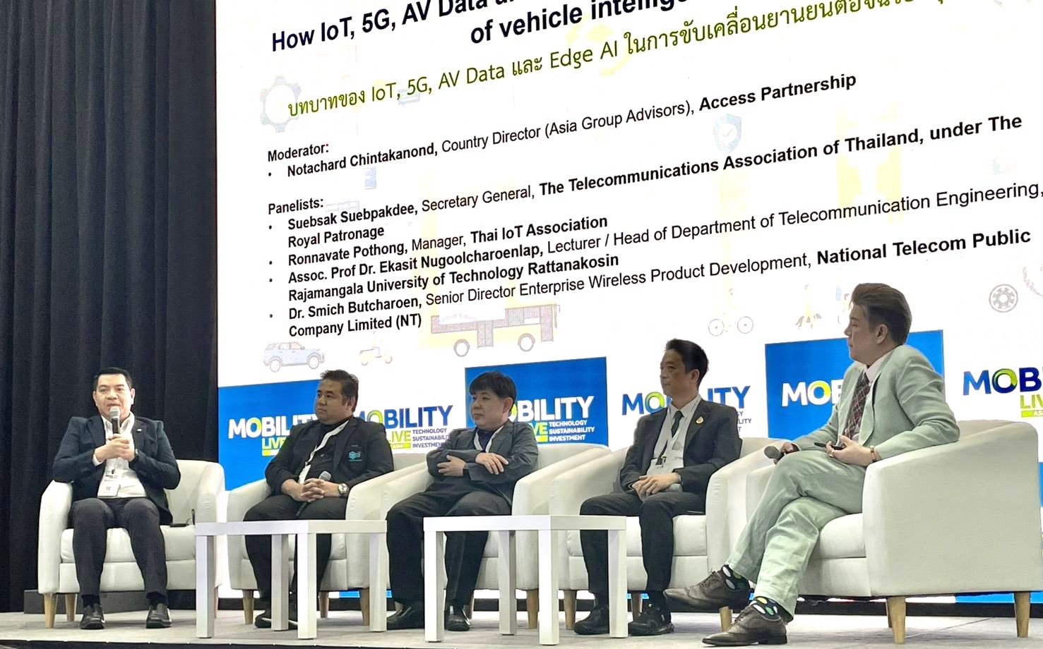 (29 มกราคม 2569) นายสืบศักดิ์ สืบภักดี เลขาธิการ สมาคมโทรคมนาคมแห่งประเทศไทย ในพระบรมราชูปถัมภ์ ร่วมเป็นวิทยากรเวทีการเสวนา เรื่อง “บทบาทของ IoT, 5G, AV Data และ Edge AI ในการขับเคลื่อนยานยนต์อัจฉริยะยุคใหม่” ในงานนิทรรศการแสดงเทคโนโลยีและการประชุมสัมมนาเชิงวิชาการ “Mobility Live & EV Charge Live Thailand 2026” และงาน “Highways Thailand 2026” โดยการจัดงานมีวัตถุประสงค์ให้ครอบคลุมเนื้อหาทุกด้านของอุตสาหกรรมโซลูชันการเดินทางสมัยใหม่ นวัตกรรมยานพาหนะไร้คนขับ/ยานยนต์อัตโนมัติ การเปลี่ยนผ่านสู่ยานยนต์ไฟฟ้าและระบบชาร์จ และโครงสร้างพื้นฐานการคมนาคมและระบบถนน ทั้งนี้ เพื่อรองรับความต้องการใช้งานที่ขยายตัวอย่างรวดเร็ว และการเปลี่ยนผ่านสู่ระบบคมนาคมที่ยั่งยืนของประเทศ ณ ศูนย์นิทรรศการและการประชุมไบเทค บางนา กรุงเทพฯ จัดโดย บริษัท เทอราพิน พีทีอี จำกัด