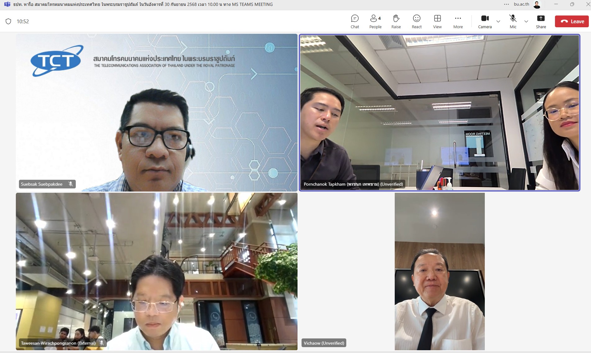 (30 กันยายน 2568) คุณวิเชาวน์ รักพงษ์ไพโรจน์ นายกสมาคมโทรคมนาคมแห่งประเทศไทย ในพระบรมราชูปถัมภ์ ให้ข้อมูลและข้อเสนอแนะเชิงนโยบาย ในหัวข้อ “Thailand Future Growth Engine” เพื่อระบุโอกาสและอุปสรรคของธุรกิจบริการ ดิจิทัลและโทรคมนาคม แก่ผู้แทนธนาคารแห่งประเทศไทย เพื่อให้ธนาคารแห่งประเทศไทยจัดทำข้อเสนอแนะเชิงนโยบายแก่ภาครัฐ โดยเฉพาะภาคบริการสมัยใหม่ที่มีศักยภาพสูง และจัดทำเป็น white paper เสนอที่ประชุมคณะกรรมการร่วมภาครัฐและเอกชนเพื่อแก้ไขปัญหาทางเศรษฐกิจ