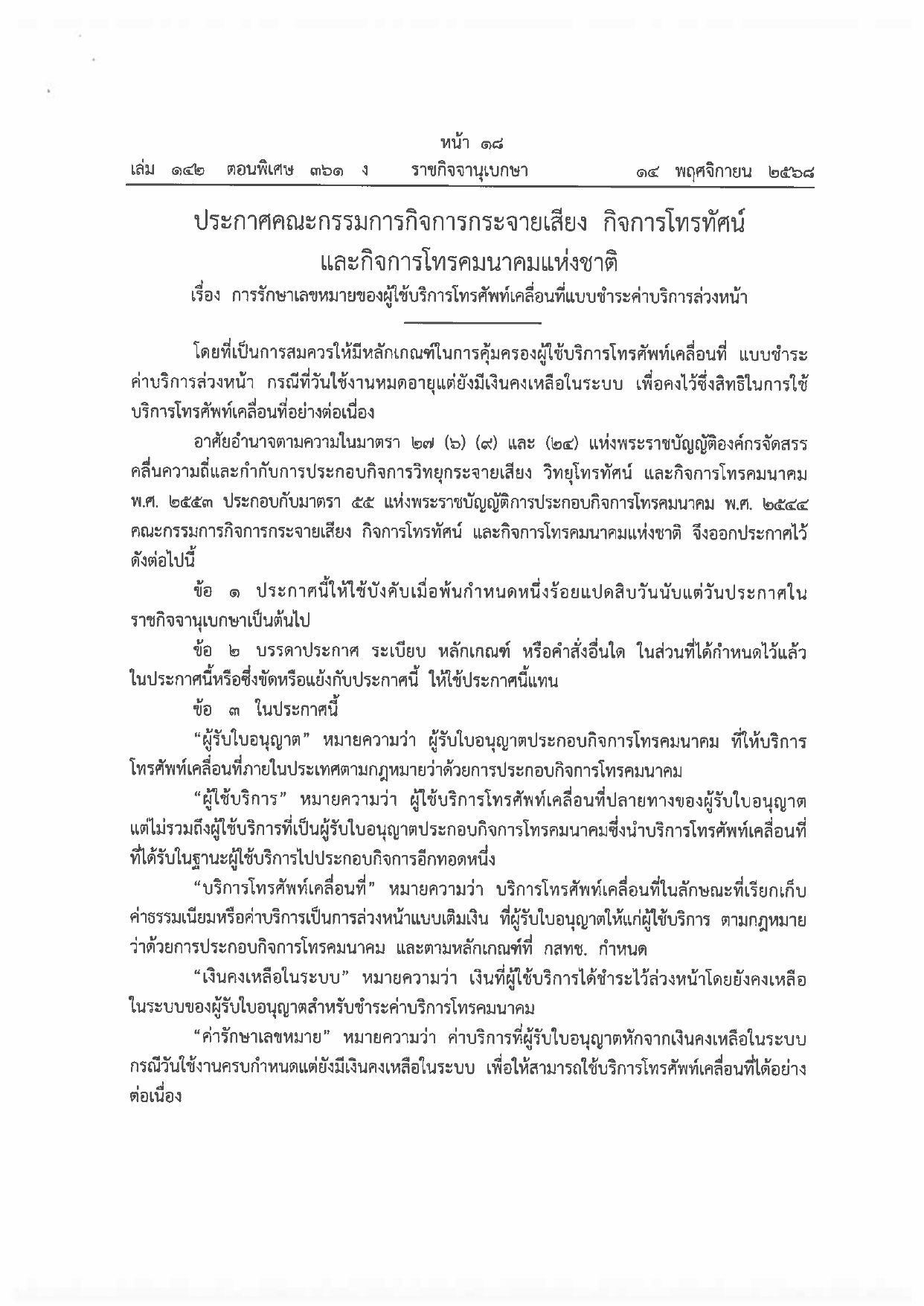 ได้ลงประกาศในราชกิจจานุเบกษ่า เล่ม ๑๔๒ ตอนพิเศษ ๓๖๑ ง เมื่อวันที่ ๑๔ พฤศจิกายน ๒๕๖๘